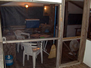 This is a picture of the "kitchen" area of the tent, taken from the outside deck next to the "bedroom."